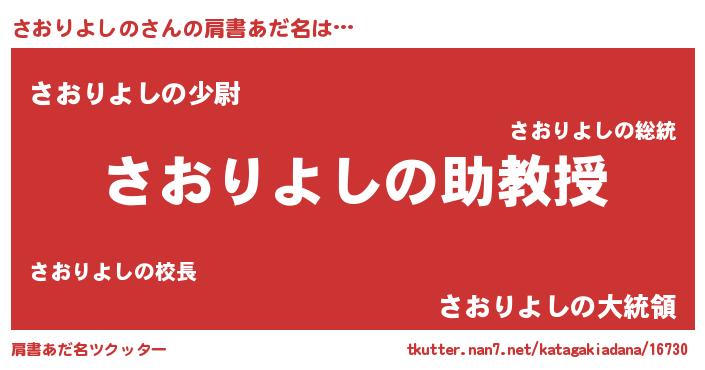 | ヘコむあだ名 | 『酢こんぶ』『さおりよしの(遠い目)』 |