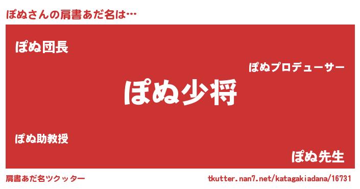 | 男性向けラノベタイトル風あだ名 | 『転生したらぽぬだった件』 |