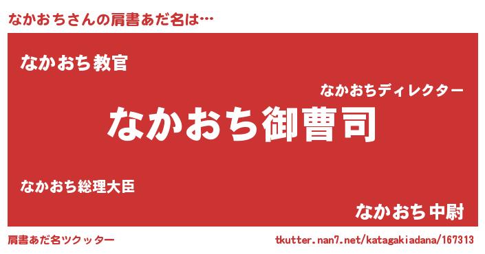 | 男性向けラノベタイトル風あだ名 | 『なかおちの憂鬱』 |
