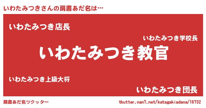 | 男性向けラノベタイトル風あだ名 | 『魔弾の王といわたみつき』 |