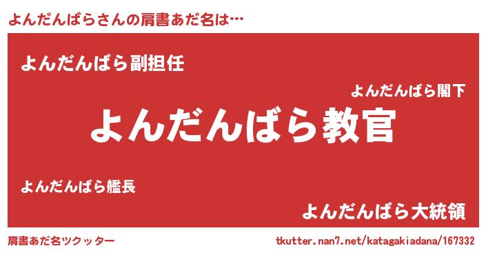 | 意味不明あだ名 | 『住所不定無職よんだんばら(79歳)』 |