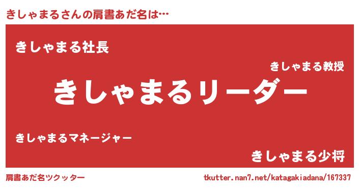 | 男性向けラノベタイトル風あだ名 | 『きしゃまるの嫁は女の子じゃないと思った?』 |
