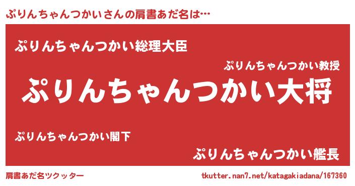 | 男性向けラノベタイトル風あだ名 | 『転生したらぷりんちゃんつかいだった件』 |