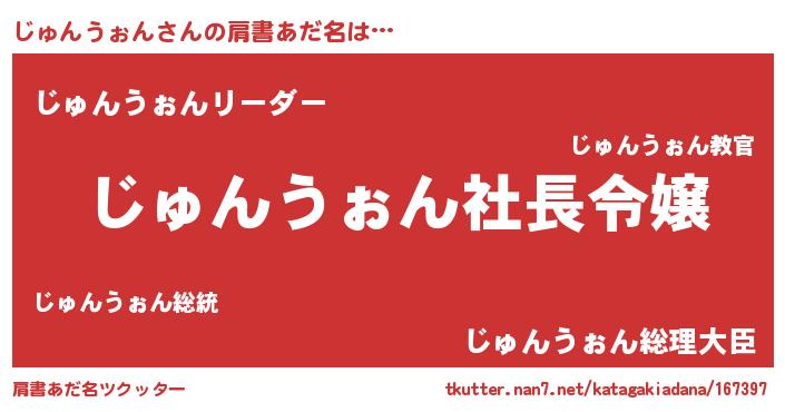 | ポケモン風あだ名 | 『ジュチュウ』『ヒジュンウォン』 |