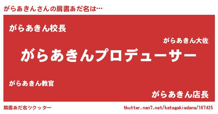 | 恥ずかしいあだ名 | 『がらちん』『プリティーがらあきん』 |