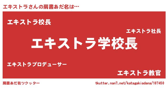 | ヘコむあだ名 | 『エキストラ(爆)』『エキにゅー』 |