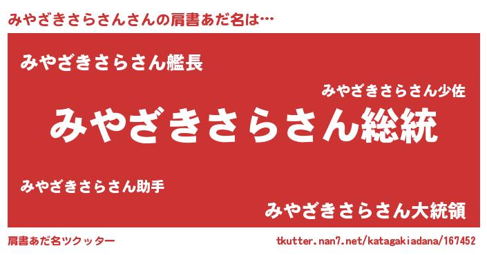 | 意味不明あだ名 | 『自称みやざきさらさん』 |