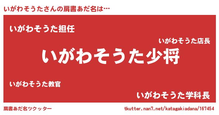 | 男性向けラノベタイトル風あだ名 | 『イガワソウタスレイヤー』 |
