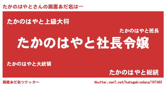 | 胡散臭い通販商品みたいなあだ名 | 『モテモテ間違いなし霊験あらたかなお札…その名も「たかのはやと」』 |