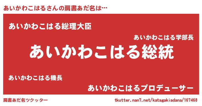 | ヒーロー風カッコイイあだ名 | 『最強戦士アイカワコハル』 |