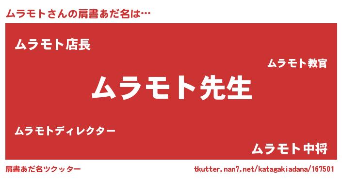 | ヘコむあだ名 | 『ムラモト(小並感)』『ムラにゅー』 |