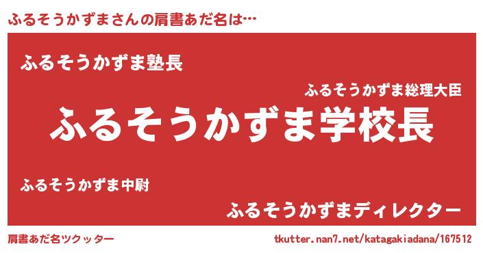 | 女子向けラノベタイトル風あだ名 | 『ふるそうかずま恋絵巻』 |