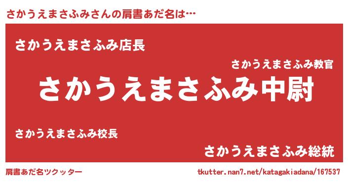 | 男性向けラノベタイトル風あだ名 | 『転生したらさかうえまさふみだった件』 |