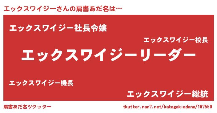 | 女子向けラノベタイトル風あだ名 | 『エックスワイジーの卵を拾いまして』 |