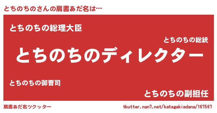 | ポケモン風あだ名 | 『トチゴンZ』『トチノダネ』 |