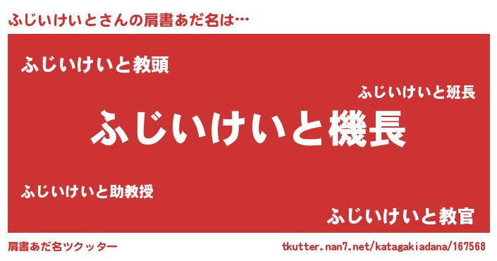 | ヒーロー風カッコイイあだ名 | 『ネオフジイケイト』『仮面フジダー』 |