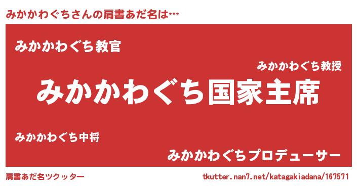 | ファンタジー風あだ名 | 『エターナルミカカワグチー』 |