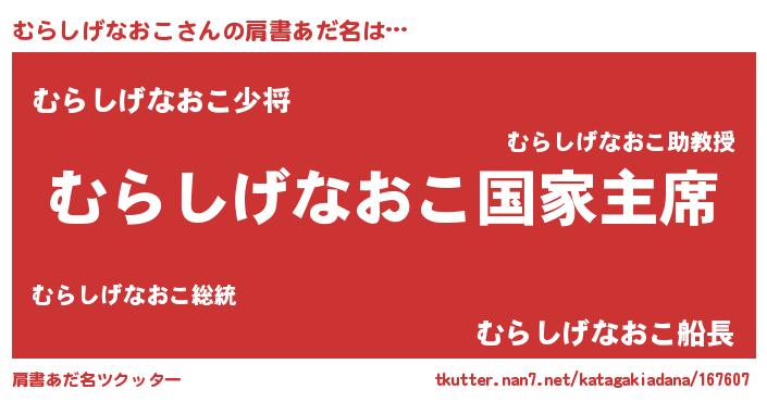 | 欧米人風あだ名 | 『むらしげなおこクリステル』 |