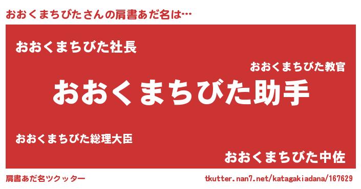 | 男性向けラノベタイトル風あだ名 | 『おまえをオタクにしてやるから、俺をおおくまちびたにしてくれ! 』 |