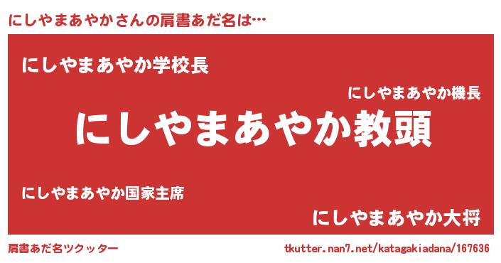 | 男性向けラノベタイトル風あだ名 | 『にしやまあやかという概念が存在しない退屈な世界 』 |
