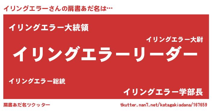 | 意味不明あだ名 | 『とにかく怪しいイリングエラー』 |