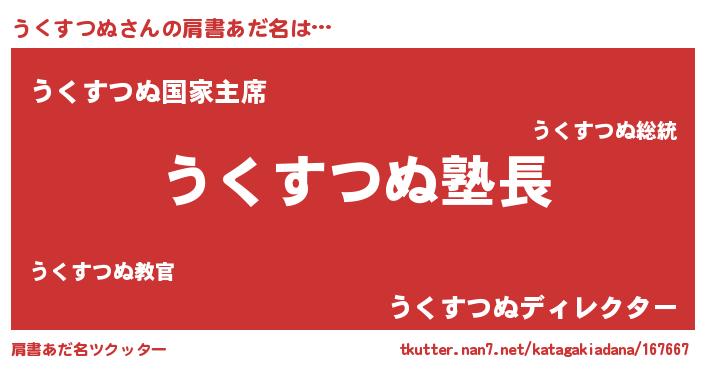 | 欧米人風あだ名 | 『ウサインうくすつぬ』 |