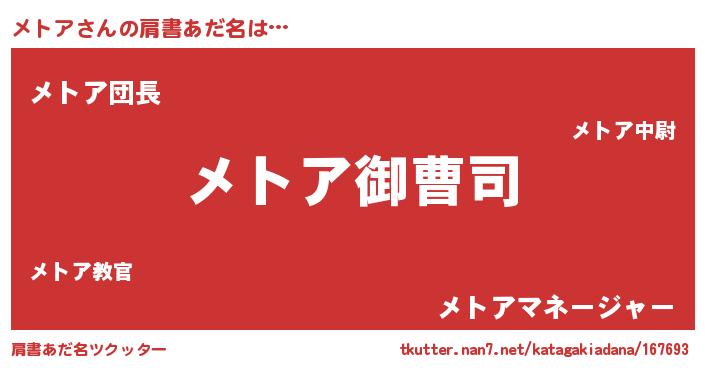 | ヒーロー風カッコイイあだ名 | 『スーパーメトア』『天弓騎士メト』 |