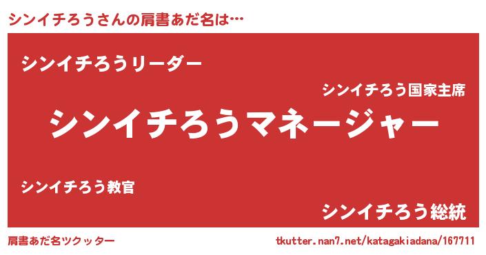 | 男性向けラノベタイトル風あだ名 | 『はたらくシンイチろうさま!』 |