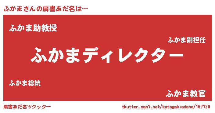 | 男性向けラノベタイトル風あだ名 | 『ふかまに滅ぼされるだけの簡単なお仕事です』 |