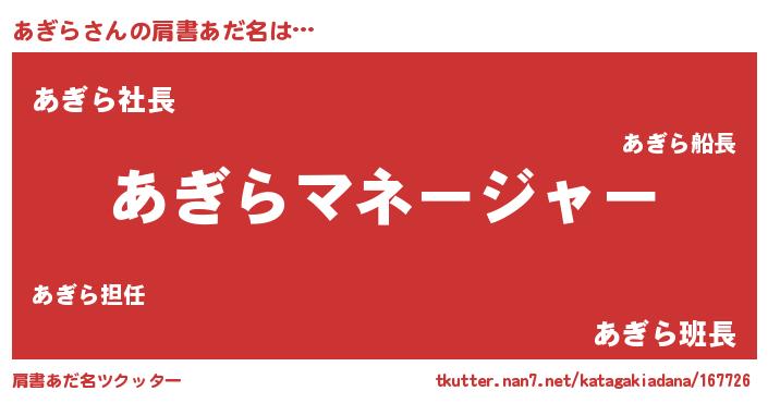 | 意味不明あだ名 | 『ペロリンあぎら』『永久保存あぎら』 |