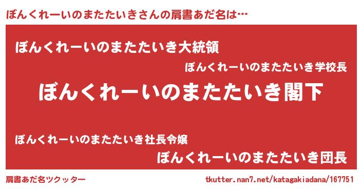 | 意味不明あだ名 | 『自称ぼんくれーいのまたたいき』 |
