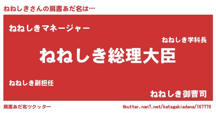 | ポケモン風あだ名 | 『ネネシダネ』『ネネゴンZ』 |