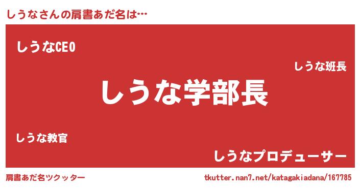 | 意味不明あだ名 | 『眠気覚ましガムしうな味』『自称しうな』 |