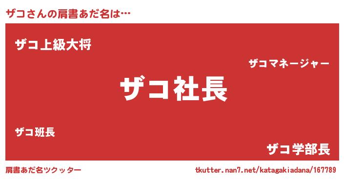 | ヒーロー風カッコイイあだ名 | 『スーパーザコ』『天空の使者ザコ』 |