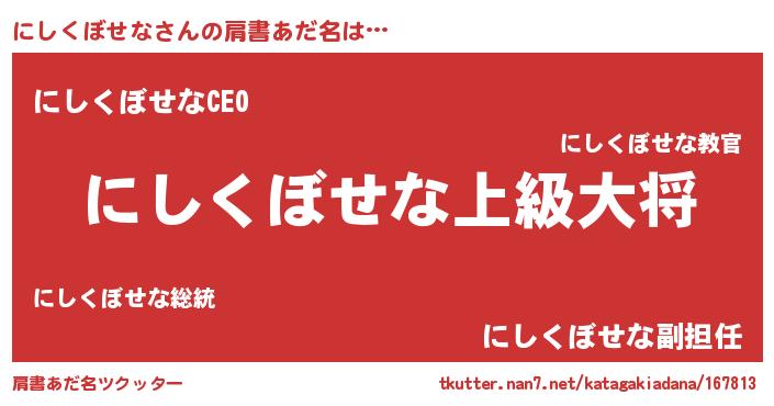 | 胡散臭い通販商品みたいなあだ名 | 『必ず成功する霊験あらたかなお札…その名も「にしくぼせな」』 |
