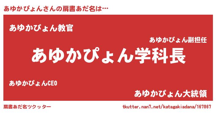 | 男性向けラノベタイトル風あだ名 | 『おまえをオタクにしてやるから、俺をあゆかぴょんにしてくれ! 』 |