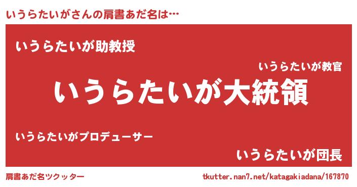 | 胡散臭い通販商品みたいなあだ名 | 『幸せが訪れる高級そうな壺…その名も「いうらたいが」』 |