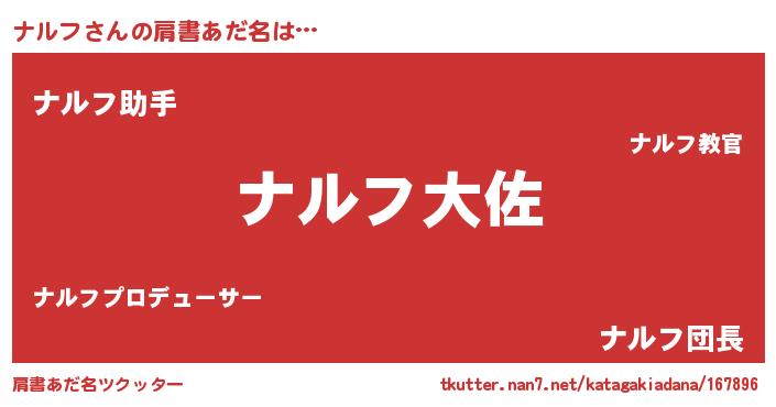 | 男性向けラノベタイトル風あだ名 | 『転生したらナルフだった件』 |