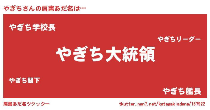 | 意味不明あだ名 | 『やぎちフォーエバー』『自称やぎち』 |