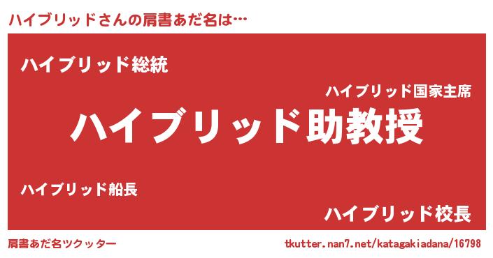 | 男性向けラノベタイトル風あだ名 | 『ノーゲーム・ノーハイブリッド』 |