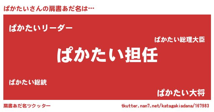 | 意味不明あだ名 | 『永久保存ぱかたい』『自称ぱかたい』 |
