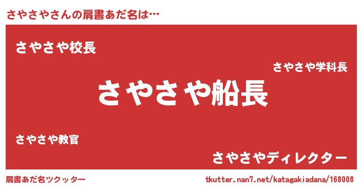 | ヘコむあだ名 | 『さやさや(小並感)』『さやっ子』 |