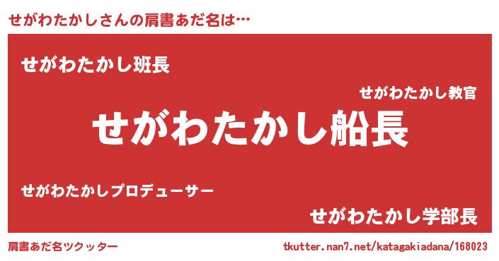 | 欧米人風あだ名 | 『せがわたかし・ステッグマイヤー』 |