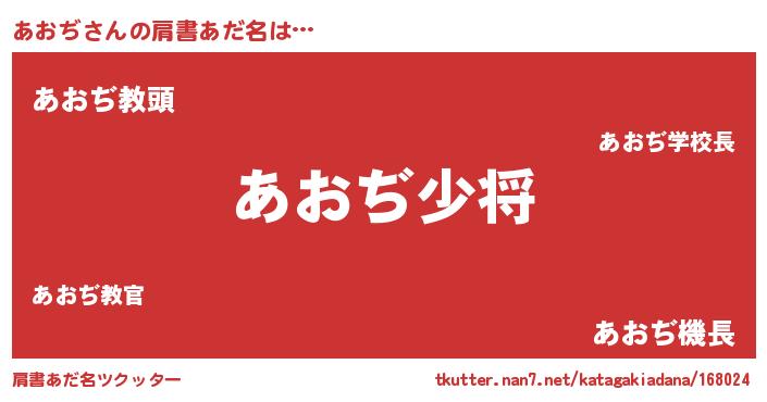 | 男性向けラノベタイトル風あだ名 | 『あおぢ~年齢イコール彼女いない歴の魔法使い~』 |