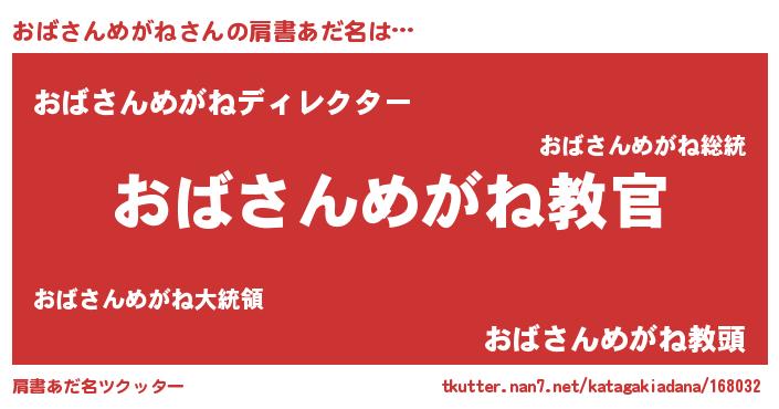 | 意味不明あだ名 | 『住所不定無職おばさんめがね(91歳)』 |