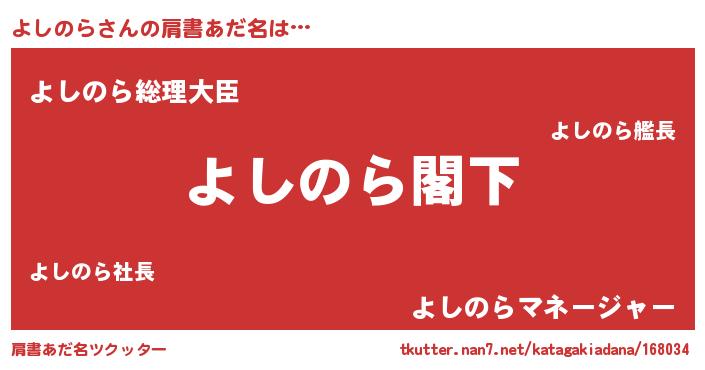 | ポケモン風あだ名 | 『ヨシセウス』『ヨシノダネ』 |