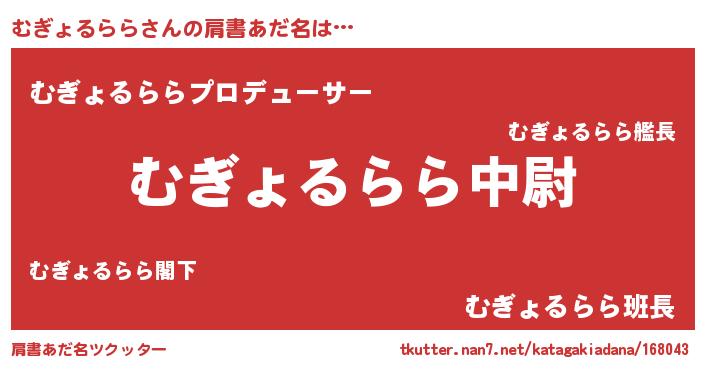 | 料理風あだ名 | 『むぎょるららごはん』 |