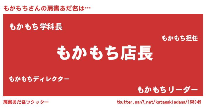 | 男性向けラノベタイトル風あだ名 | 『もかもちの憂鬱』 |