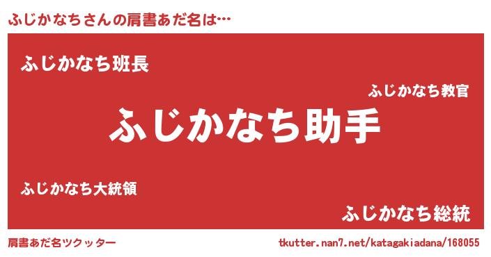 | 男性向けラノベタイトル風あだ名 | 『おまえをオタクにしてやるから、俺をふじかなちにしてくれ! 』 |