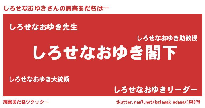 | ヘコむあだ名 | 『しろせなおゆき(笑)』『しろお』 |